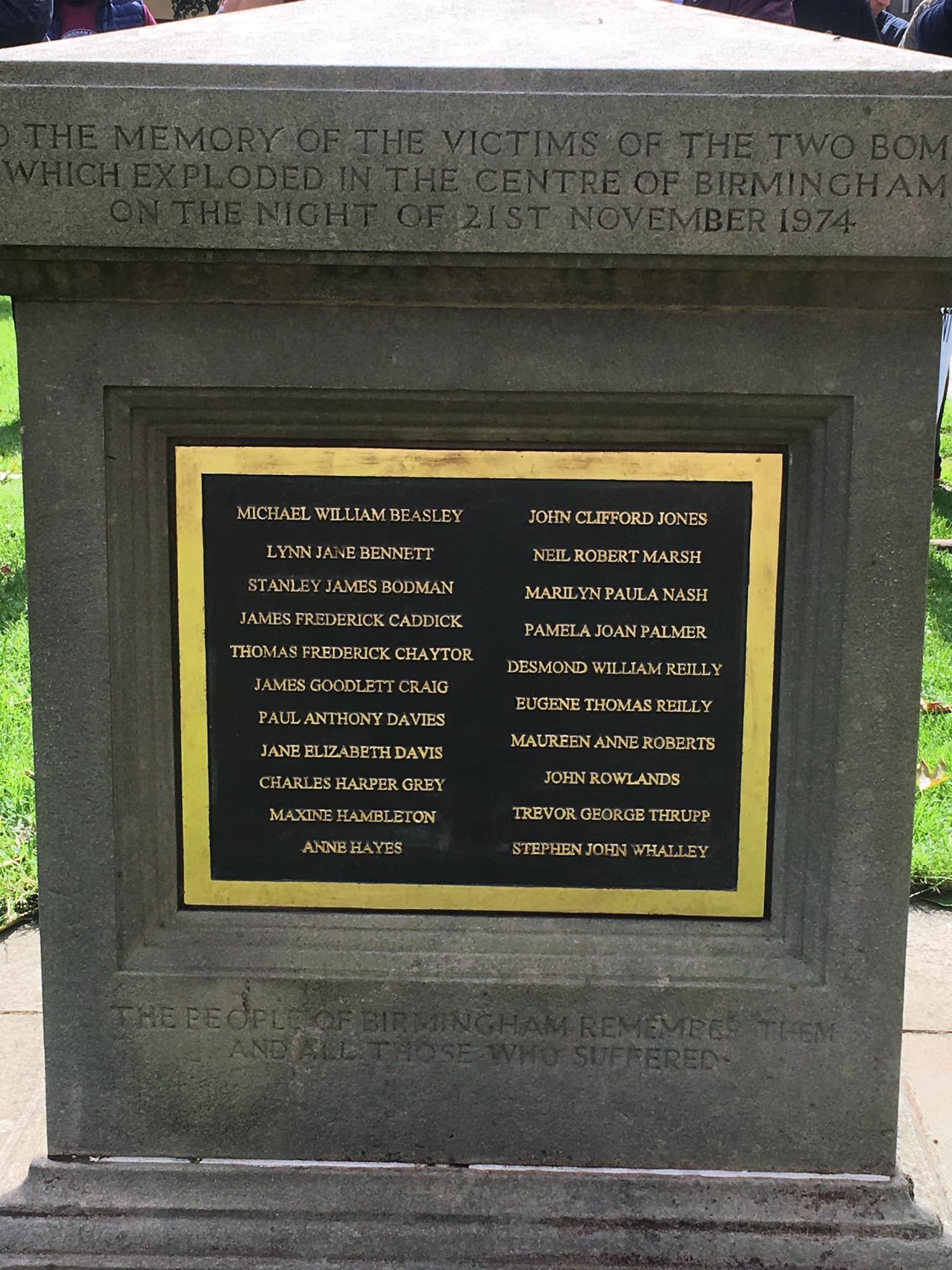 The victims of the Birmingham pub bombings are honored and remembered in the heart of Birmingham every day.